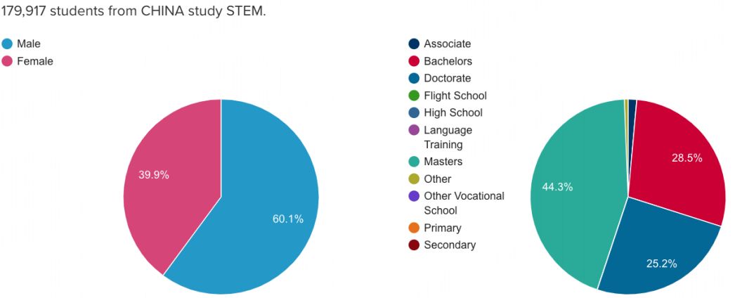 从美国国土安全部公布的调查数据来看,在全美的留学生中,仅 2018 年一年,就有近 18 万中国留学生学习 STEM(科学、技术、工程和数学学科)专业。再加上人工智能与数据科学行业兴起,目前中国留学生和有调整岗位需求的应聘者大量共存,国际学生想要找到心仪工作,往往需要强大的个人学术背景和行业实习经验作支撑。