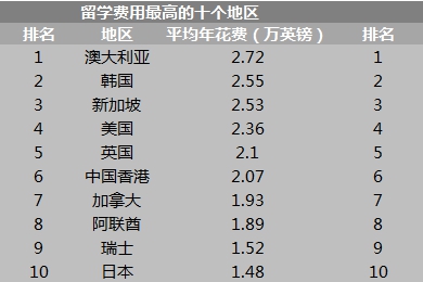侨外海外教育规划专家指出,随着国内中产阶级的崛起,能够支付起留学费用的家庭不断增加,推动了留学潮的爆发,但是留学费用仍在家庭支出中占据重要比例,据调查,九成留学生的学费来源依靠父母。就留学费用来看,各国年平均留学学费从10万到35万人民币不等,再加上传统留学国家物价普遍较高,生活费、购物和社交费用及房租,一年下来,最低也要10万人民币左右。近日《世界日报》报道称,在美留学生本科4年花费逾30万美元,2018年各国学费仍避免不了继续调涨。例如英国大学2017年秋季入学的学生平均学费已经从9000英镑涨至9250英镑,在2018年度学费将继续上调至9500英镑;澳大利亚国会今年的预算案则提高了澳大利亚学费标准,在2018年初将在现有水平上再涨1.8%,并计划至2020年上涨幅度达到7.5%。